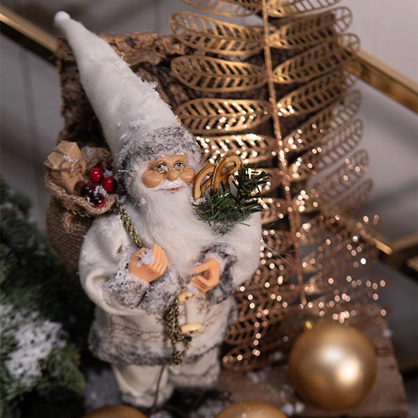 Un merveilleux petit Père Noël gris de décoration à ajouter à votre bouquet, composition ou plante. Vous pouvez également l’acheter seul et vous en servir de décoration pour votre maison.