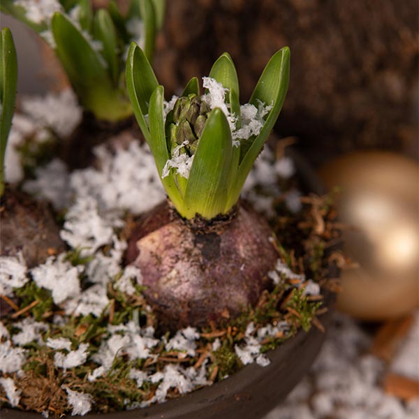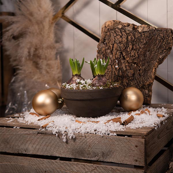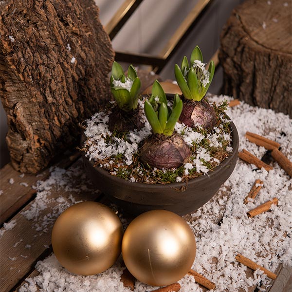 COMPOSITION DE JACINTHES DANS UN POT EN CÉRAMIQUE